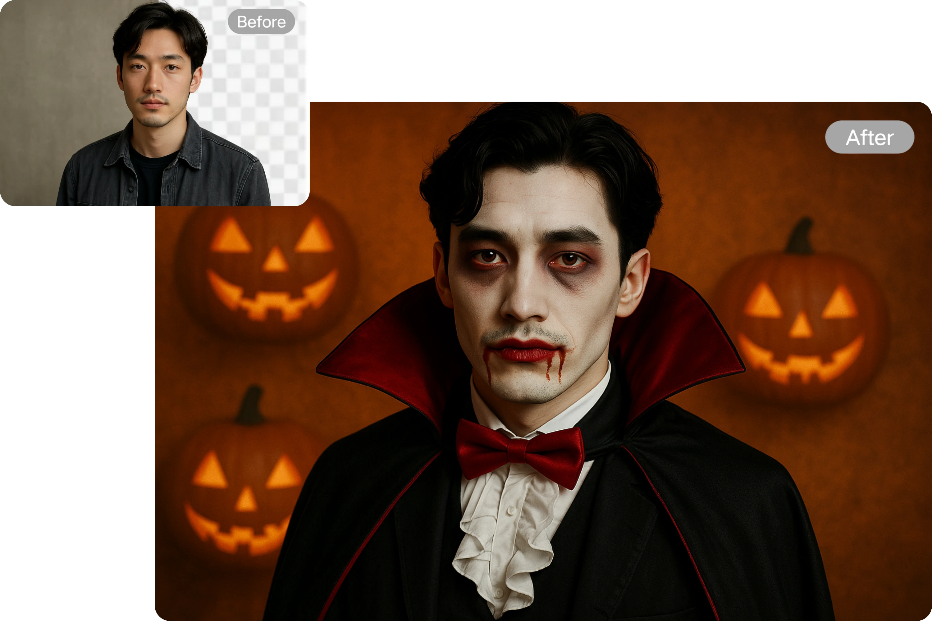 Create spooky, high-quality Halloween looks instantly with the AI Halloween Filter.